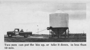 Two men ù one in the pickup hitched to the bin's running gear, and one on a tractor pulling the guide cable ù can put the bin into the transport or vertical mode in less than ten minutes, explains Lorne Reimer, president.