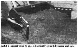 A new "power wing" bucket equipped with 2-ft. long, independently controlled wings on each side increases bucket loading speed 50% and lets you do jobs you couldn't handle with a conventional bucket, according to Henke Mfg., Waverly, Iowa.