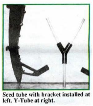 He also designed a Y-Tube that lets you combine two application tubes into one so you don't have two tubes trying to drop chemical into a single furrow. You just run the two tubes into the Y-Tube and then run the single output tube to seed tube bracket.