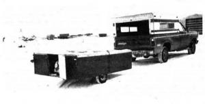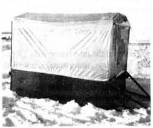 The house is 6 ft. wide by 8 ft. long and has four openings in the floor. Each opening is about 30 in. by 12 in. A propane bottle, which feeds a heating stove, mounts on the front hitch. Hoesel notes that the house can also be used for camping in summer. If there's enough interest he'd draw up detailed do-it-your-self plans.