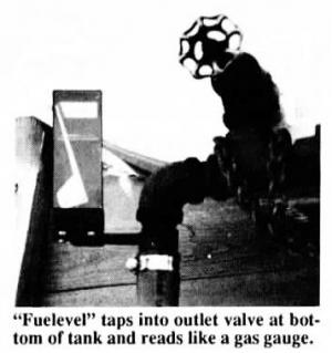 Invented by Alberta farmer Jim Bergeson, the new "Fuelevel" simply taps into the outlet valve at the bottom of the tank. It reads like a gas gauge in a car. Fits any size tank and works with any liquid.
