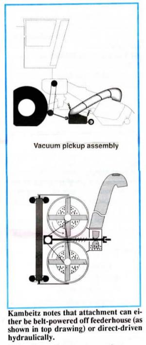 Kambeitz, who is still refining his prototype, says he's tried powering the add-on vacuum both with hydraulics and by V-belt.
