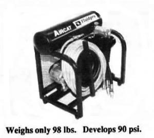 The new compressor is perfect for powering hand tools and will operate up to a 3/ 4-in. impact wrench, according to company representative Randy Friesen. The unit is compact - weighs only 98 lbs. Requires a hydraulic flow of 4 to 8 gpm and has hydraulic safety valves to prevent overspeeding or reverse operation. The twin cylinder compressor is belt-driven by a gear-type hydraulic motor. Puts out 8.4 cfm at 90 psi. A hose rack holds 12-ft. of 1/2-in. hydraulic hose plus 35 ft. of 3/8-in. air hose.
