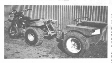 Koebensky also built a flotation trailer for his ATV built from an old Hesston articulated commercial mower and pulled by a ball hitch he mounted on an add-on frame at the rear. "It already had turf tires so I only had to add a tongue. We use it to haul nearly everything but it works especially well for picking rocks in fields. You can pick rocks right from the seat if you're alone."