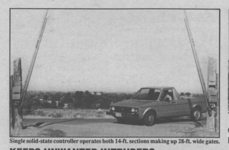 Opening gates up to 28 ft. wide is as easy as sounding the horn on your car, pickup or tractor, thanks to a new electro-pneumatic operating mechanism introduced by Iron-tech, of Twin Falls, Idaho.