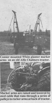 "We were having trouble with skips and overlaps when spraying. We had a set of markers from an 8-row White planter and decided to try to make a sprayer out of them," says Lloyd Conner, who farms with his sons Wendell and Dale.
