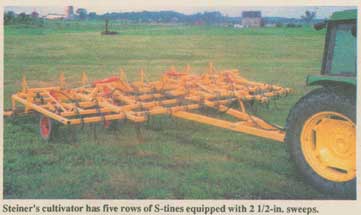 "It cost less and works just as good as commercial field cultivators," says Steiner. "Everything I used to build it was new, except for the hubs, wheels, and tires, which I borrowed from an old New Holland forage harvester and an old International pull-type combine. Most commercial models are built from 2-in. sq. tubing and have welds that eventually crack or break. I used 3-in. tubing and double or triple welded everything. I've used it for a year and I can't see any wear at all."