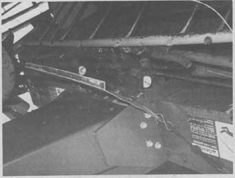 Watson also came up with a clever way to unplug belts on his baler. "Dry, short straw and corn stalks often rolled around inside the bale chamber for a long time and broke up, causing the belts to tighten and the baler to plug up. To solve the problem in the past, we manually locked the endgate shut, then activated the hydraulic cylinders that are used to open the endgate. The cylinders remain in position, but the belt tension arms are still free to move which slackens the belt tension and allows plugged-up material to feed into the baler. To make the job easier we installed an electric car door lock on the manually operated hydraulic valve on the baler's endgate. The electric car door lock is wired to a switch in cab and lets us lock the endgate without getting off tractor."