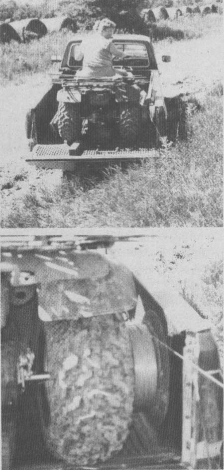 "It's a simple idea but it works well," says Wohler. "I guide wire onto the wheel rim while my wife controls the ATV. She usually puts it in second gear. After the wheel has been running for a while she can speed up the throttle so we can roll up the wire faster. We had been winding up wire by hand which took a lot of work and time. I didn't want to spend the money for a commercial pto-driven wire winder.
