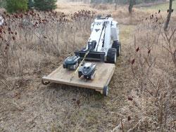 “I think it works as good as brush mowers that work off the skid loader’s hydraulics, maybe better,” says Kulzer. “A lot of skid loaders have weak hydraulics which causes the mower to plug up a lot. My mini loader doesn’t have high flow hydraulics, so using an engine on each blade gives my mower the power it needs.