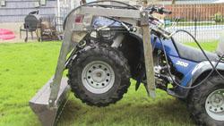 The new EarthMover ATV loader with its 7 1/2 hp hydraulic power pack is a real workhorse. The loader has a 60-in. lift height and a capacity of 500 lbs. The rear-mounted power pack with its 5-gal. reservoir offers plenty of counter weight to the loader.