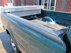 "Your toolbox moves easily on the rollers toward the back of the pickup bed. The rails are positioned so the toolbox clears the wheel wells,? says Miller. "It's still in the prototype stage and I don't have anything for sale yet. I think my idea would work on any toolbox as long as it clears the wheel wells."