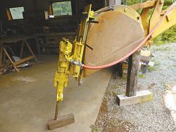 "Bruce tries to keep our road in the best possible condition. Recently, he decided to remove an unwieldy hump in the road. Gathering a jackhammer, a compressor and a few semi-willing neighbors, Bruce decided we were all a bit too old to be spending long hours jackhammering. So he designed and built a mounting system that lets us use the jackhammer on our community backhoe, and instantly the job became doable and even enjoyable. I think it was American ingenuity at its finest.