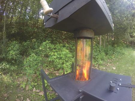 The most noticeable thing about this new stove is its glass chimney. Flames are visible from the stove top to the flue on the Indiglow Stove & Grill, developed by Dale Niggemann and Greg David of Stevens Point, Wis.
