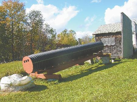 The tubular composter rests on seven 2 by 6-in. crosspieces, each with 2 caster wheels that fit into the culvert's grooves. The 2 by 6's ride on two 16-ft. long, 6 by 6-in. hemlock timbers. They, in turn, rest on 2 shorter hemlock timbers at each end of the composter.