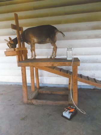 Criger says his homemade milker can milk 4 goats in half an hour.