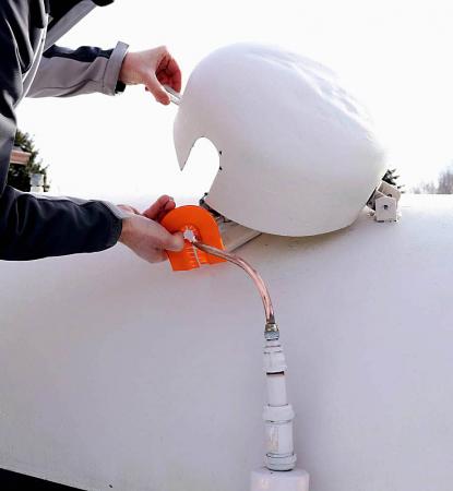 “We got tired of birds and other small critters nesting under the dome on our propane tanks,” says Ron Forbes, inventor of the ProDomeSeal – a simple rubber cover that closes off the opening on propane tank domes.The new seal has slots on the sides that fit tightly into standard openings, which are 3 in. wide by 4 in. high. Flaps down the center fit around the gas pipe that runs through the opening.