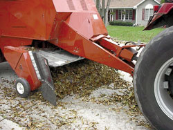 According to Perry, a standard baler won't work with leaves because the tines miss 25 to 30 percent of them. "We chose these three baler models because they're equipped with pre-charge chambers that pound material into the bale chamber, putting a maximum amount of material in each bale," he notes.