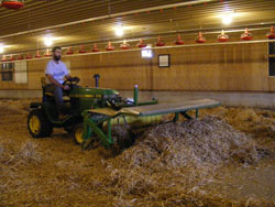 He uses just 1/2-in. of straw to start his chicks, but his rotary fork will spread straw up to 4 in. deep.