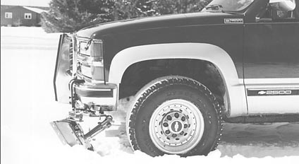 Here's a new type of attachment for the front of your pickup that'll improve its handling in deep snow, on or off the road. Drift Deflectors are 15-in. long V-shaped blades with 3-in. heavy rubber buffer pads on bottom. They mount on pickup bumpers and are positioned to push snow away from front tires. A pair of heavy springs mounted behind the blades provides forward support when they're plowing snow and enough rear movement to allow objects to pass underneath. The assembly can be set out of the way when it isn't being used.